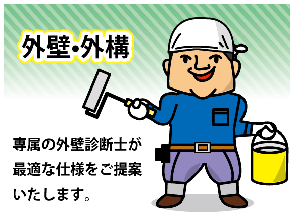 外壁の性能と課題に対処できる専門的な知識でお客様に公正なアドバイスやご提案をしています。 外壁リフォーム診断から工事、管理、メンテナンスまで、お客様それぞれのお住まいの状況に合わせて 最も適切で効率的・効果的な工法をご提案します。